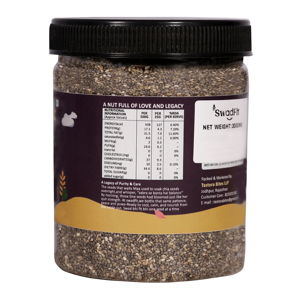 SWADFIT PREMIUM CHIA SEED | OMEGA-3 RICH, HIGH FIBER SUPERFOOD | BEST QUALITY SEED SNACK