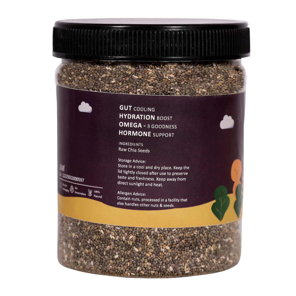 Premium Chia Seeds – tiny superfood rich in protein (~17g per 100g), fiber, omega-3 & antioxidants for energy, digestion & heart health. Best consumed in the morning or mid-day, soaked in water, smoothies, or sprinkled on meals.